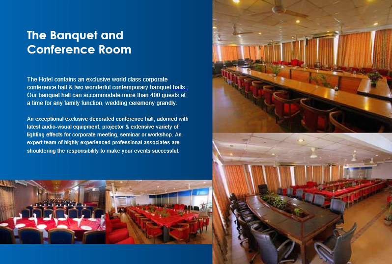 The Hotel contains an exclusive world class corporate conference hall & two wonderful contemporary banquet halls. Our banquet hall can accommodate more than 400 guests at a time for any family function, wedding ceremony grandly.